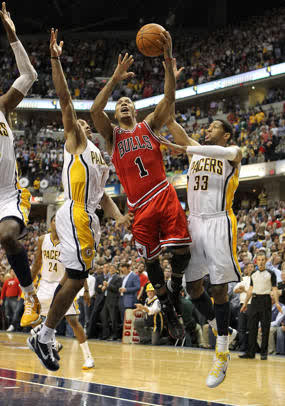 Derrick Rose shot 4-18 from the field but it was his 4th field goal that mattered most. Rose drove to the basket and finished with a strong layup in the final 30 seconds of the game. The Pacers missed a three on their next possession and lost the game to fall into a 0-3 hole. Rose led all players with 23 points.