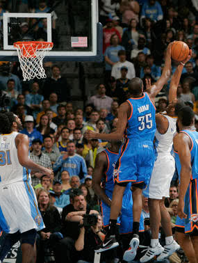 The Thunder rolled into Denver and knocked the life out of them. The Thunder won game 3 and now hold a commanding 3-0 series lead. The Nuggets were intent on leaving Serge Ibaka open while they focused on Kevin Durant. Ibaka made them pay scoring 22 points and pulling down 16 rebounds. Durant would end up with 26 points and 6 assists. Denver’s J.R. Smith missed a tightly contested three point attempt as time expired. Nene led the Nuggets with 15 points and 10 rebounds. The Thunder will look to close out the series on Monday.