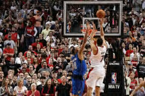 In what may have been the best performance of these playoffs, Brandon Roy had a classic performance to help his Blazers even up their series with the Dallas Mavericks at 2. Roy scored 24 points but it was his 18 fourth quarter points that will live in Blazers lore for years to come. The Blazers were down 18 going into the fourth, and as many as 23 in the game before Roy took over. Roy handled the ball and used dribble penetration to beat the Mavs’ defense. The performance was especially special to Roy because he has been battling painful knee injuries and has been a shell of his old self this season. Roy’s fourth quarter barrage included a huge 4-point play. Roy was in tears after the game as his teammates mobbed him on the sidelines. Portland fans will surely remember this fourth quarter performance for years to come.