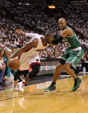 In what may have been the worst officiated game in NBA History, the Miami Heat were handed game 1 of their Semifinals series with the Boston Celtics. Dwayne Wade led the Heat with 38 points and James Jones added 25 huge points off the bench. Ray Allen led Boston with 25 points and Paul Pierce had 17 points before he was wrongfully ejected in the fourth quarter. In a game that stat wise was pretty evenly played, it was decided by the officials. Let’s not discredit the defense Miami played, which allowed them to take an early lead.
