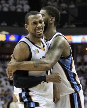 And their hands go up…and they stay there!! Playing in front of their home crowd, Zach Randolph and Mike Conley Jr led a fourth quarter rally that sent the game into overtime. The Grizzlies would control the overtime and win the game. They now hold a 2-1 series advantage over the Thunder. Randolph had a huge game with 21 points and 21 rebounds. Conley Jr and O.J. Mayo scored 18 points for Memphis. Russell Wetsbrook led OKC with 23 points.