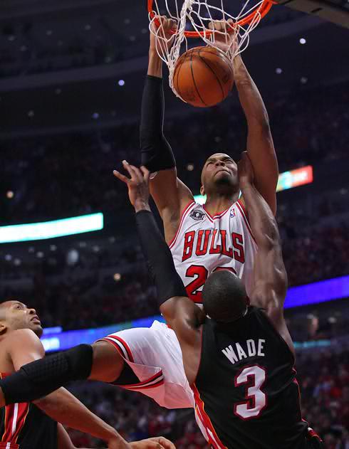 The Miami have a full dinner on their plates as the Chicago Bulls hammered the Heat in game 1 of their Eastern Conference Finals series. The Bulls got up in the faces of the Heat players and made them work for everything they got. Chicago showed why they were the leagues best defensive team, smothering LeBron James and Dwayne Wade. Chris Bosh was able to shake loose for a 30 point game. That being said, I’m pretty sure Chicago will take that trade off any day. Derrick Rose once again led the Bulls to victory scoring 28 points while abusing anyone Miami put in front of him. Chicago Taj Gibson was the hammer off the bench throwing down two monstrous dunks. The first was a vicious two-hand posterizing slam on Dwayne Wade and the second was a thunderous one-hand put back near the end of the game.
