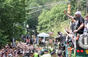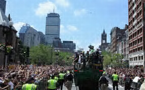 The Boston Bruins celebrated their first Stanley Cup Championship in 39 years with a rolling rally through Boston on Duck Boats. An estimated 1 million fans came out to celebrate and get a glimpse of their Bruins and the Stanley Cup.