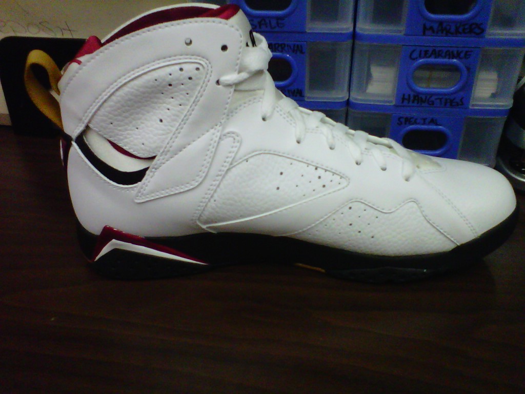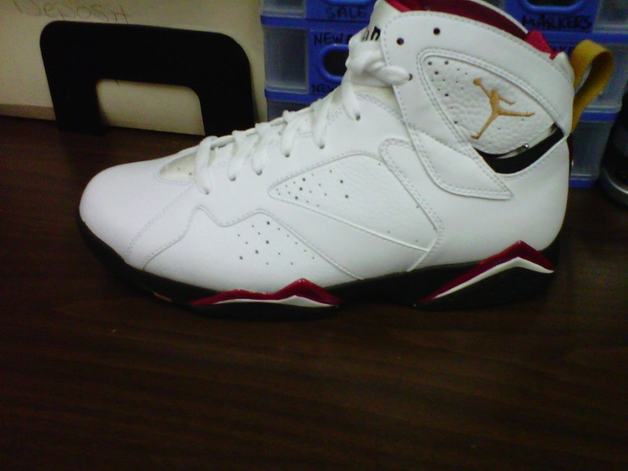 It has been a week since the Cardinal 7’s released and the results have been mixed. They haven’t sold out completely everywhere so if you haven’t grabbed a pair you still can. It seems as if the older, more nostalgic Sneakerheads appreciate this shoe more than the younger, new age sneaker enthusiasts. I personally believe this shoe is a must have and would not sleep on them. Check out the pics below, maybe they will help some of the haters appreciate the shoe a little bit more.