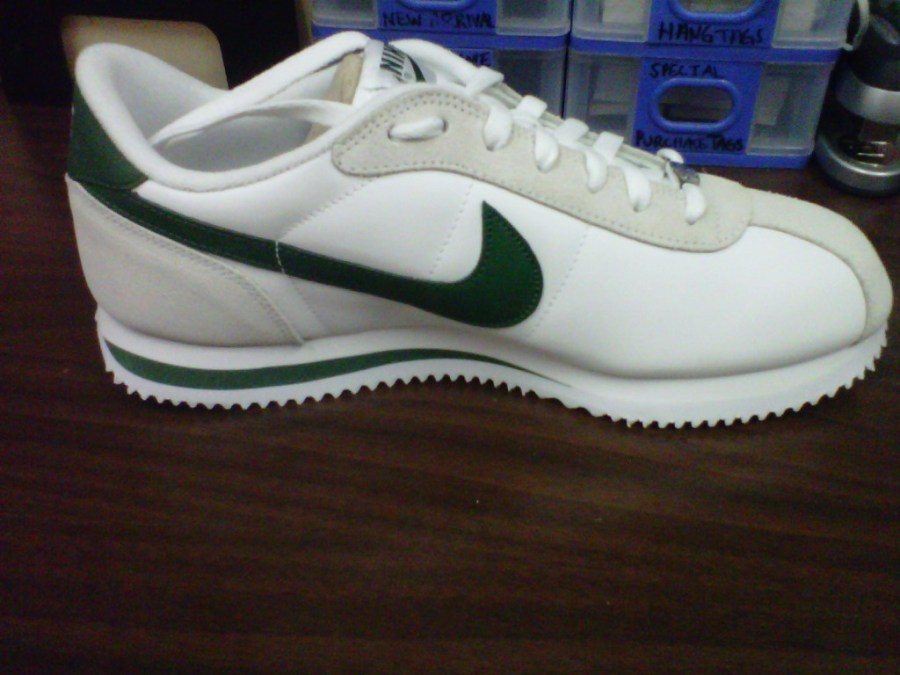 Nike continues to roll out new colorways of the classic Nike Cortez this year. Popping up in stores this week is a nice and clean white/green combo. What makes this and any other Cortez so attractive is it’s refreshingly low retail price of $60. Check out the pics below and tell me what you think.