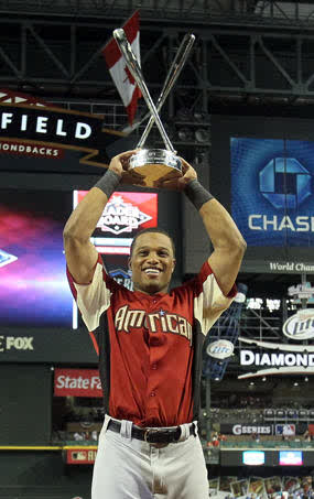 Cano Wins Derby With his father pitching to him, New York Yankees second baseman Robinson Cano won the 2011 MLB Home Run Derby. Cano outlasted Boston Red Sox first baseman Adrian Gonzalez 12-11 in the final round. The 12 final round homers were a derby record. Share this:Share Click to share on Facebook (Opens in new window) Facebook Like Loading... Related