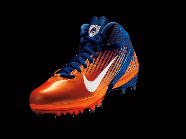 As the Boise State Broncos football program continues to rise to national prominence so has their uniforms.  Nike will continue to outfit Boise State with top-notch uniforms to go with their amazing blue field turf.  Nike has also provided Nike Air Trainer 1.3 Max, and Nike Zoom Alpha Talon & Nike Zoom Vapor Carbon Fly cleats.  Checks out the photos courtesy of Sole Collector.