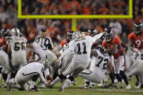 The highlight of the night came just before halftime when Raiders kicker Sebastian Janikowski nailed a NFL record tying 63-yard field goal. Darren McFadden carried the ball 22 times for 150 yards to lead the Oakland ground attack.