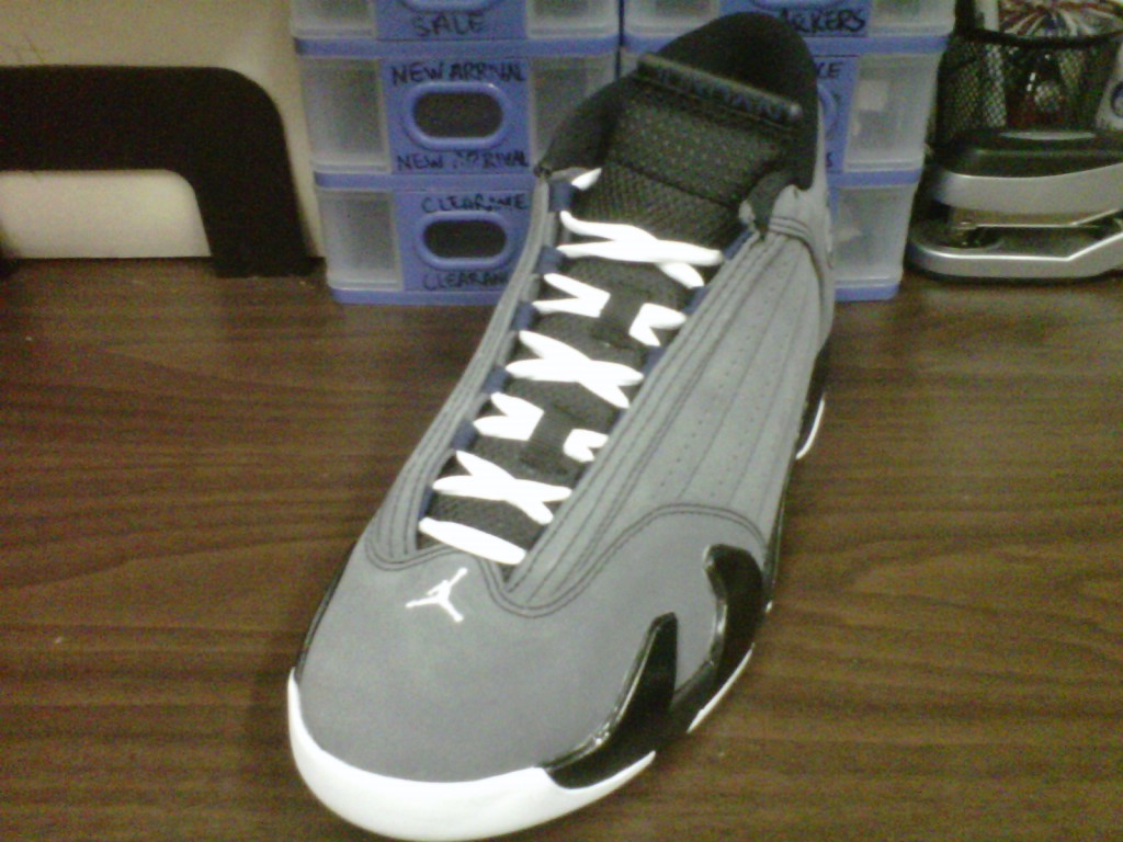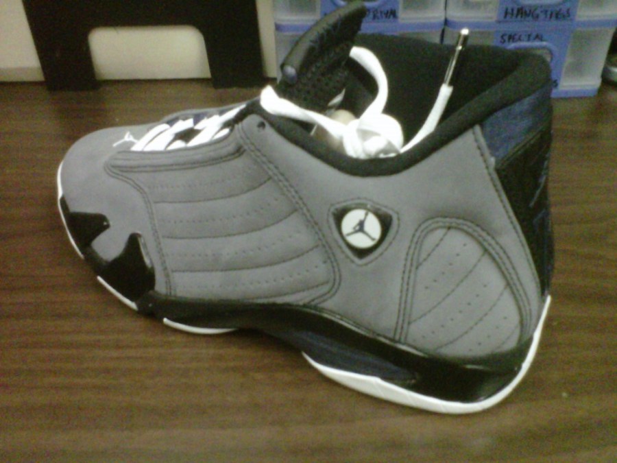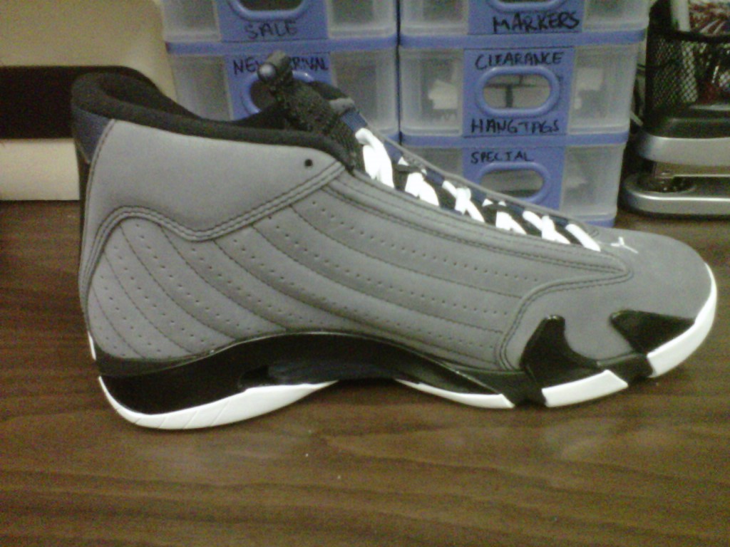 Since the numerous releases of the Air Jordan 14 Retro in 2006, we haven’t seen a solo 14 retro release since. The Air Jordan 14 Retro has returned in 2011, in an all new colorway. This latest retro is a Light Graphite/Midnight Navy-Black-White colorway. The upper has an smooth, entirely nubuck finish. Will these make it into your closet? Yourself and other sneakerheads can grab the ‘Light Graphite’ 14s this Saturday.