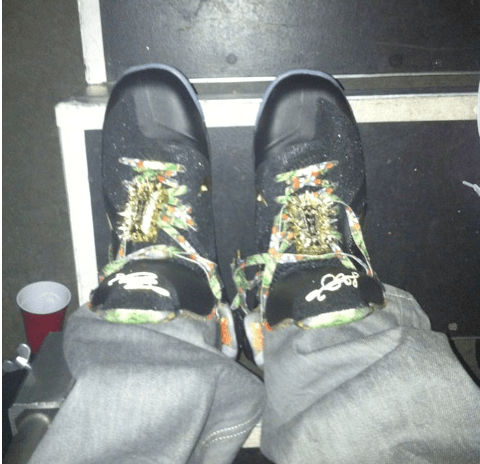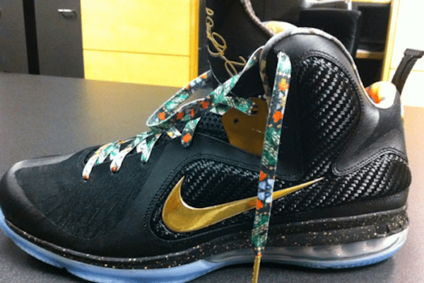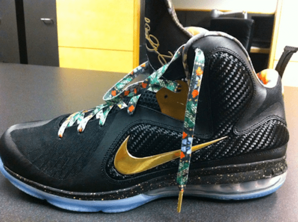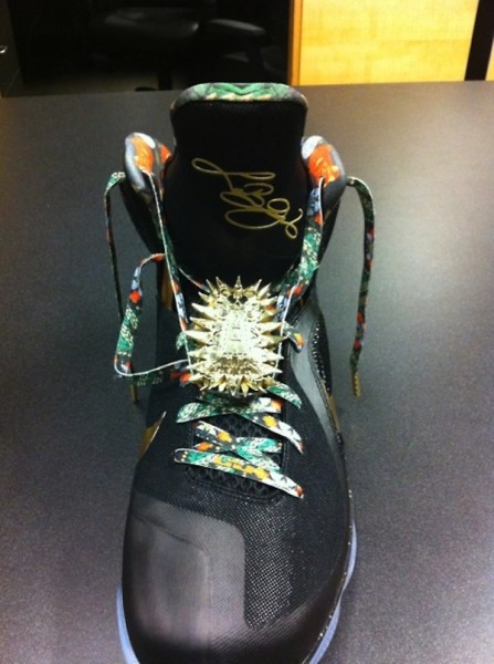 Given the relationship between LeBron James and Jay-Z, it was only a matter of time before we would see a Watch the Throne colorway of the LeBron 9. This Black/Silver/Gold colorway coincides with the color theme of the Watch the Throne album cover. LBJ even tweeted a picture of them on his feet the other night while he was attending the Watch the Throne concert. No word yet on if these will be released. Check out the images below and the picture LeBron tweeted wearing his Watch the Throne 9s.
