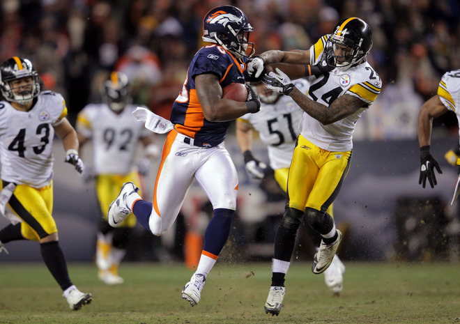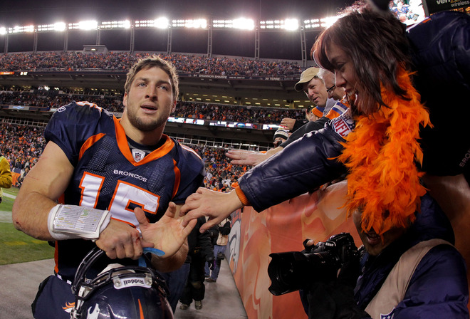 Tebow Time strikes again! Tim Tebow hopefully quieted all the critics for good after he led the Denver Broncos to a thrilling overtime victory over the defending AFC Champions, 29-23. After trailing for much of the game, the Steelers rallied to tie the game at 23 late in the 4th quarter. After Pittsburgh failed to score on the final possession of the quarter, the game went to overtime. Denver won the toss and got the ball to start the overtime period. With new playoff overtime rules in effect the Broncos would not win the game if the kicked a field goal on the initial possession. That did not matter because on the first play of OT Tebow connected with Demaryius Thomas for a 80-yard touchdown pass to win the game. This was by far Tebow’s best game of the season as he outplayed his counterpart Ben Roethlisberger. Although Tebow only completed 10 of 21 passes he did pass for 316 yards and 2 touchdowns. He also rushed 50 yards and another touchdown. Both of Tebow’s touchdown passes were caught by Demaryius Thomas, who caught 4 passes for 210 yards and the 2 touchdowns. The Denver Broncos will now travel to Foxboro to take on the New England Patriots in a Divisional Round matchup.