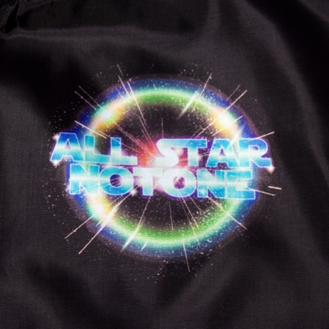 Notone has been brewing some new designs for the first quarter of 2012. This Notone “Galaxy” jacket complements the entire Nike Basketball and Sportswear All-Star “Galaxy Pack” for the 2012 NBA All-Star weekend. Headlining the pack is the new Nike Foamposite One “Galaxy” that has been the talk of the sneaker culture since Gentry Humphrey wore a sample to the Sole Collector x Penny Hardaway event last October. These shoes have caused much ruckus over the past week with many being disappointed at congested release line-ups. Whether you get a pair of “Galaxy Foams”, the Nike Lebron 9 “Big Bang”, Nike Zoom Kobe VII (7) “All-Star”, Nike KD IV (4) “All-Star” or any of the Nike Dunk releases this jacket will only strengthen the attention you will attract. This 100% Polyester jacket features a similar galactic print as seen on these models with a constellation of stars depicting a player dunking a ball (this player is reminiscent of MJ, Kobe, Lebron or even KD).
