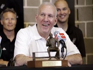 San Antonio Spurs head coach Gregg Popovich was named the 2011-2012 NBA Coach of the Year. Popovich led the Spurs to a 50-16 record and the Western Conference top seed.