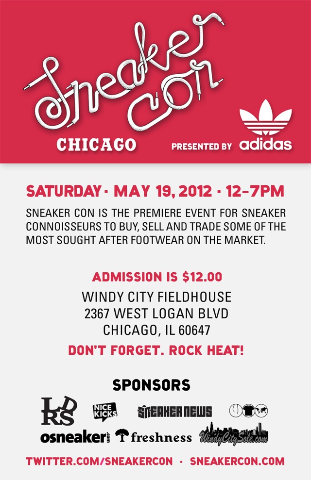 Sneaker Con will be making its first ever stop in Windy City Chicago this coming Saturday, May 19th, 2012. The traveling buy, sell and trade sneaker event will bring to the city it’s popular combination of sneaker and apparel vendors as well as allow attendees to bring their goods to sell or trade. The Saturday event will take place at the Windy City Field House at 2367 West Logan Blvd from 12pm to 7pm. Save the date, save up and bring your sneaker A-game this coming May 19th!