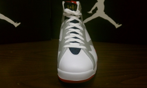 Over the last couple of weeks the build up to the 2012 Olympic Summer Games within the sneaker community has been filled with a wide array of Olympics inspired releases. Besides the Golden Moments pack that is on the horizon, releasing this Saturday is perhaps the most popular shoe of the bunch, the Air Jordan Olympic 7s. The Olympic 7s travels all the way back to the 92 Olympic Games, where the original Dream Team(best basketball team ever assembled) destroyed the world en route to the gold medal. Those old enough to remember can relieve the original Dream Team when they go out this Saturday and grab a pair. Be sure to get out early because the lines for these will be insane! Check out the detailed images below and let us know what you think about the Air Jordan ‘Olympic’ 7s.