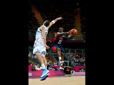 Leading 60-59 at the half, Team USA opened things up early in the third behind 7 straight points by LeBron James and a three-point barrage from Kevin Durant. Durant hit five straight threes from all over the court in the quarter en route to a massive 28 point game. James finished with 18 points while Chris Paul scored 17 points. Manu Ginobili led Argentina with 16 points.