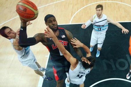 Kevin Durant was once again the high point man for the U.S. scoring 19 points. LeBron James filled up the stat sheet again with 18 points, 7 rebounds, and 7 assists. Carmelo Anthony added 18 points and 6 rebounds off the bench. Manu Ginobili led Argentina with 18 points.