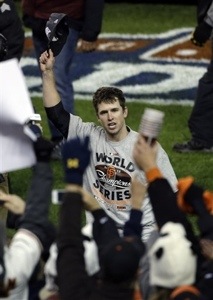 The Giants completed their sweep of the Detroit Tigers with a 4-3, 10-inning victory in game four of the World Series. NLCS MVP Marco Scutaro drove in the series clinching run with a two-out single in the top of the 10th. San Francisco closer Sergio Romo closed things out with a 1-2-3 bottom of the 10th.