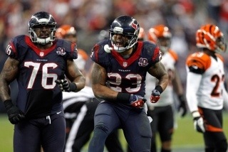 In the first game of the day the Houston Texans notched their first playoff victory in franchise history with a 19-13 victory over the Cincinnati Bengals. The Texans rode the shoulders of Arian Foster to victory. Foster finished with 140 yards rushing, with a td and 34 receiving yards.