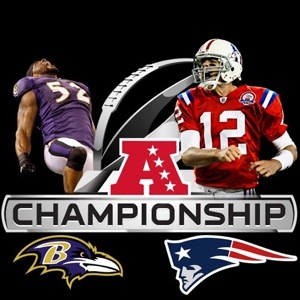 The New England Patriots beat up on the Houston Texans for the second time this season to advance to the title game, while the Baltimore Ravens shocked the top seeded Denver Broncos. The AFC Championship game is a rematch of last season’s title game in which the Patriots won narrowly.